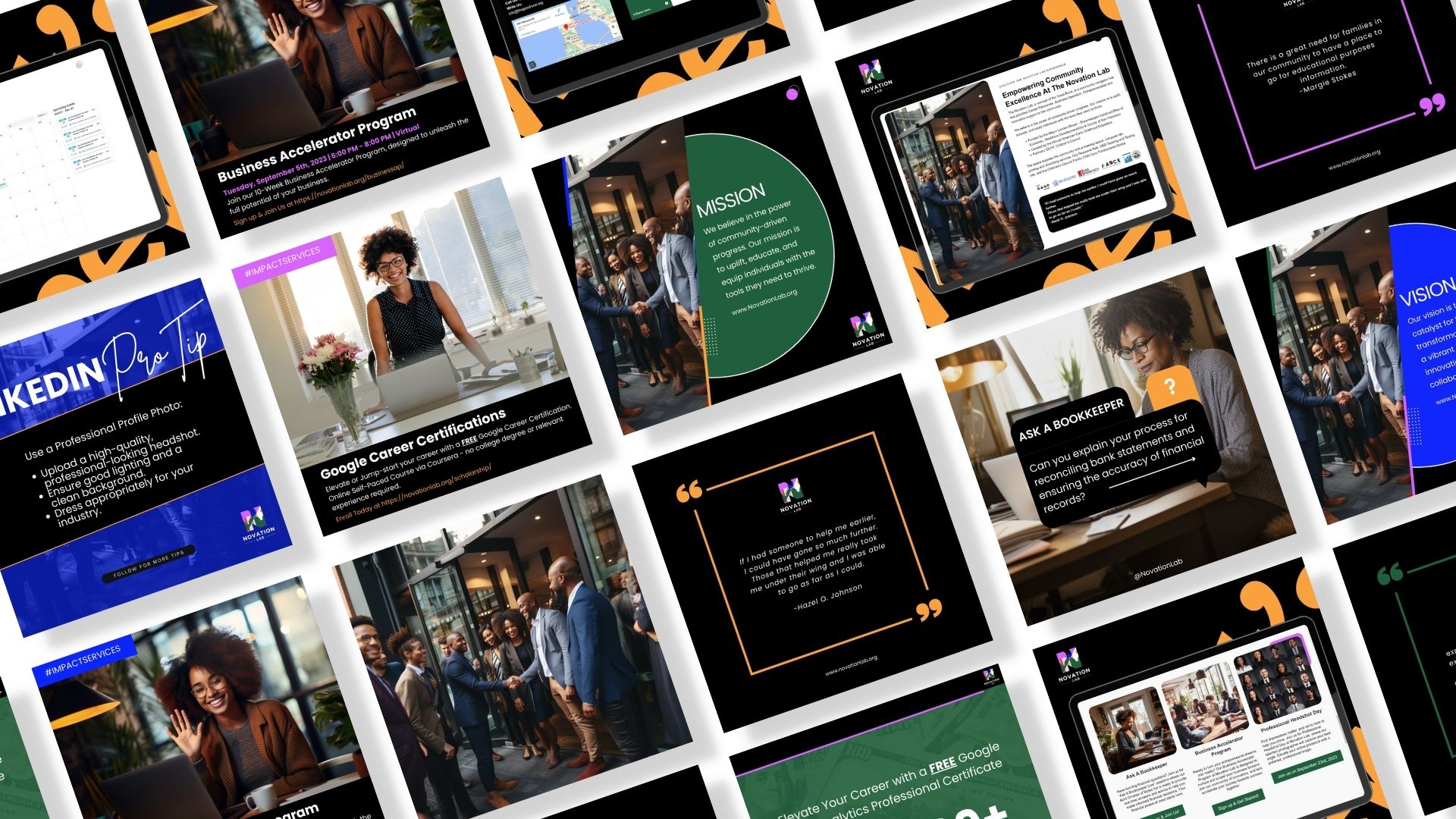 A curated collection of brand identity systems, website builds, campaign visuals, and collateral developed to align positioning, strengthen digital presence, and support long-term growth.